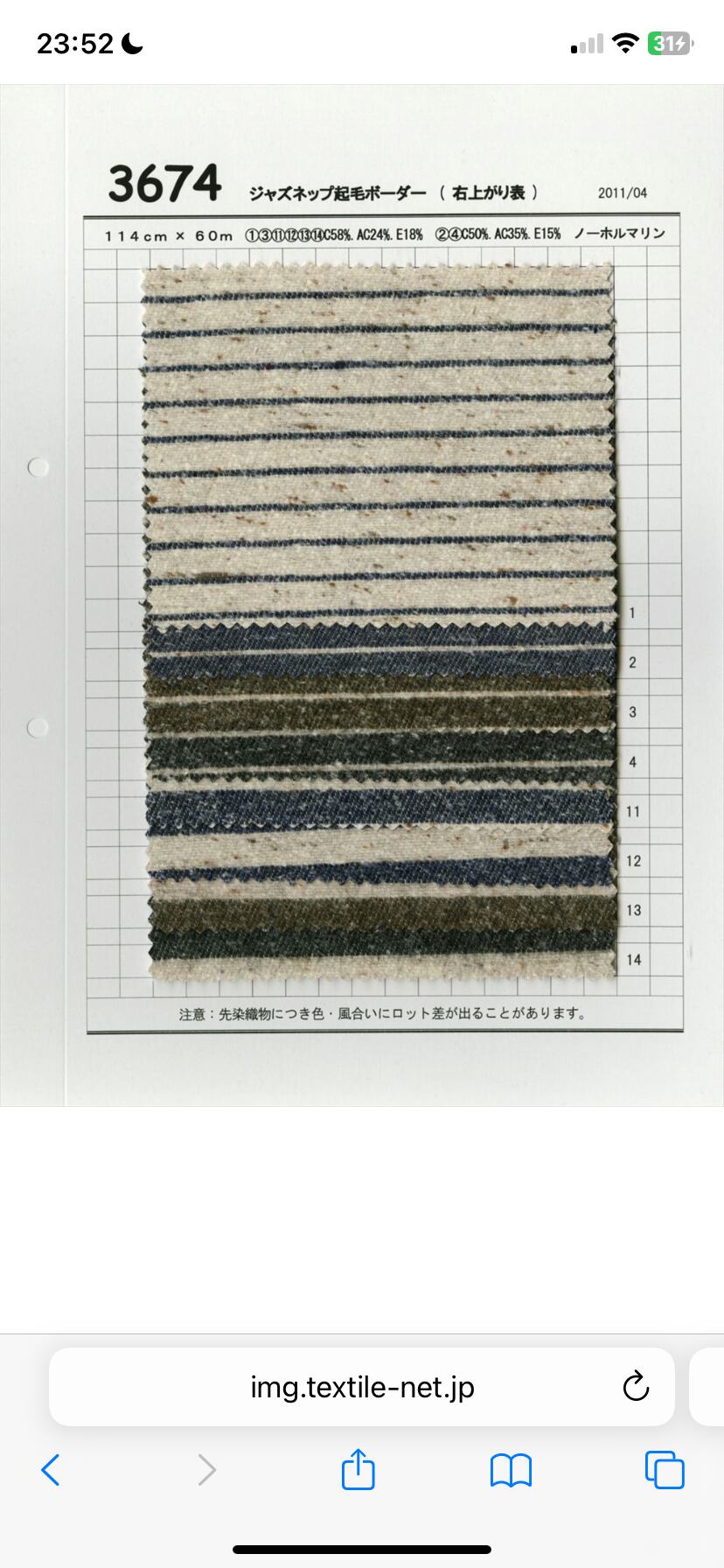 1m 日本製 ジャズネップ 先染めボーダー 生地 起毛