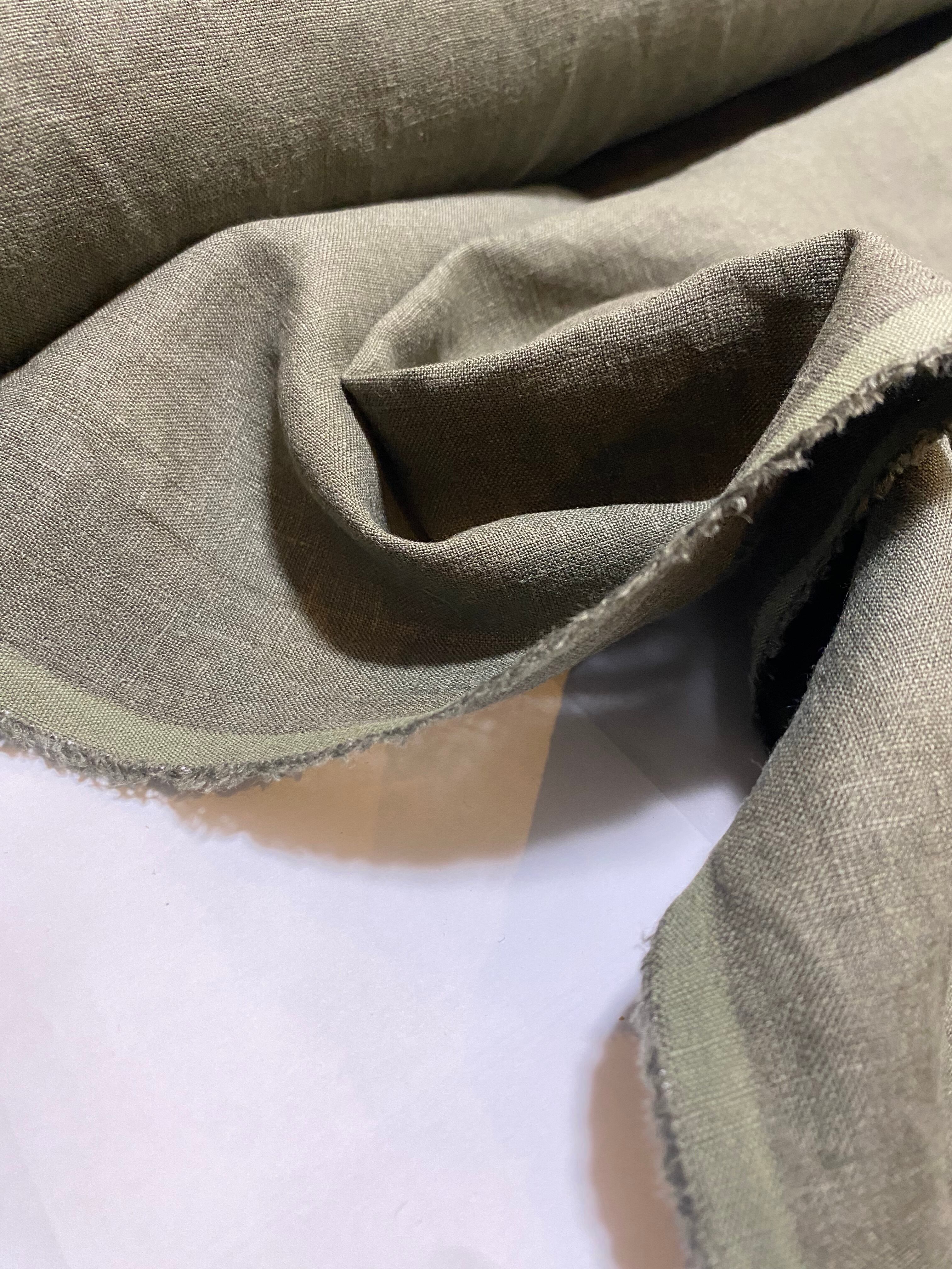 ラスト2m 日本製 西脇産 播州織 タンブラー加工リネン カーキ